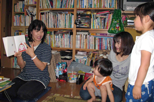 定期的に開催している、「家庭文庫」で子ども達に絵本の読み聞かせを行っています。