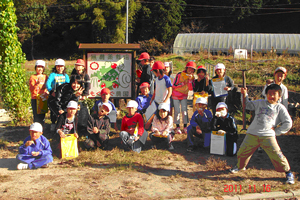 小学生の社会見学受け入れ(農家のお仕事拝見、落花生の収穫)の様子です。