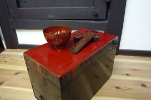 明治時代から代々引き継いで使用している漆塗り道具です。