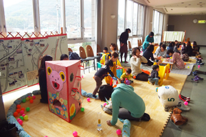「ぱおぱお あそび塾」を実施してみたい。子どもの発達、子どもへの接し方、あそびの紹介、生活の工夫などを、子どもとの遊びの中で伝え、子どもも親も、もっと楽しく楽に過ごせるようにできればいいなと思っている。