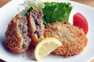 神石にはおいしい肉があります。おいしい野菜もあります。それらで作った神石高原メンチカツ、是非食べてみてください。