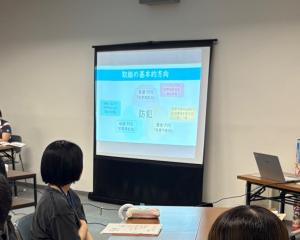 続いて、広島県から安全・安心なまちづくりへの取組について講義を行った後、福山大学PACEの学生が活動紹介及び事前学習・演習の進め方の講義を行いました。
