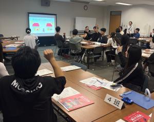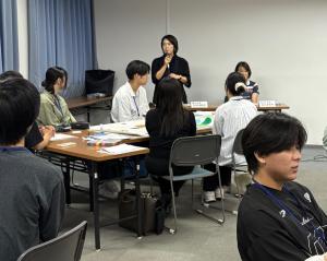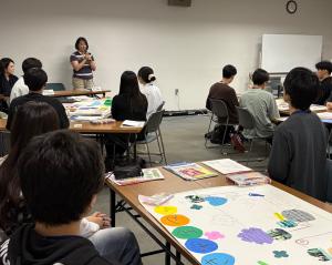 講師の比治山大学現代文化学部西川教授、福山大学「PACE」の顧問である福山大学人間文化学部大杉准教授から御指導をいただきながら、各グループとも積極的に意見を出し合い、生き生きと取り組む姿が印象的でした。
