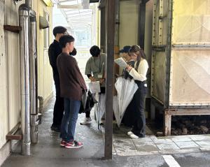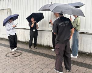 フィールドワークでは、グループごとにわかれ、講義で学んだ「入りやすい」「見えにくい」というキーワードをもとに、実際に県庁周辺を歩いて自分たちの目で危険な場所を見つけ、子供たちに指導するポイントを学びました。