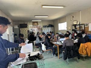 地元の農業機械販売代理店の方を講師に招き、農業は他産業と比較して機械作業中の死亡事故が多いことや、危険個所を事前に把握できていれば死亡事故を未然に防げることを学びました。従業員の方からは「怖い、気が引き締まった」等の感想がありました。