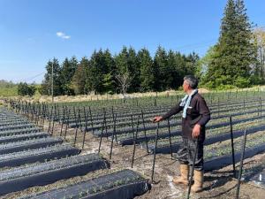 【小菊生産者の栗本氏】 【定植苗の様子】