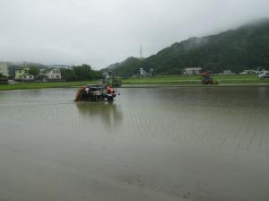 【無人で田植するロボット田植機】 【無人機と有人機の同時作業】