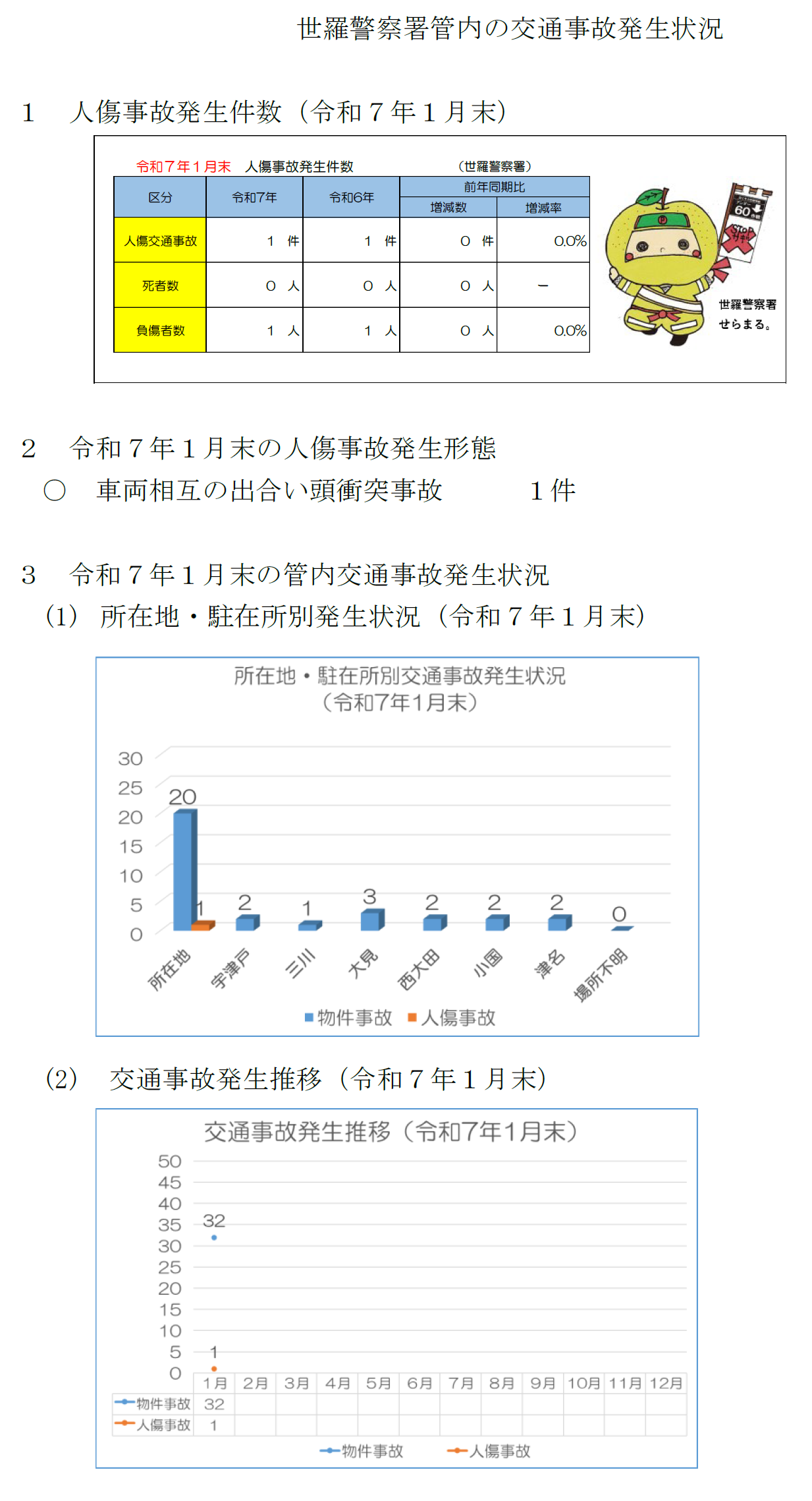 ◇PDF版はこちら~世羅警察署交通事故発生状況(令和7年1月末) (PDFファイル)(254KB)