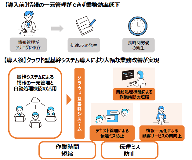 その結果、伝達ミスが発生しやすく、業務効率が低下し、長時間労働の一因となっていた。
