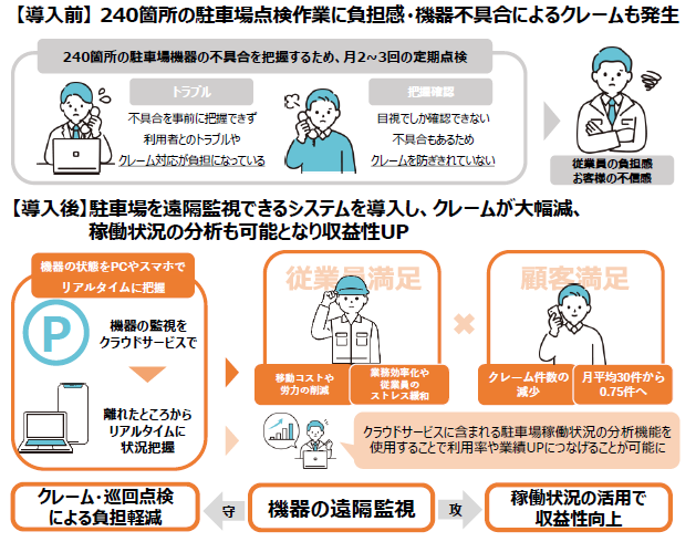 駐車場の遠隔監視システム導入で、点検回数やクレーム発生数を大幅削減!(駐車場管理)