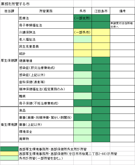 西部厚生環境事務所・保健所呉支所の所管業務は次のとおりです。