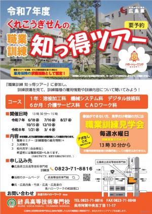 (呉高等技術専門校)令和7年度 「くれこうぎせんの職業訓練 知っ得ツアー」のご案内