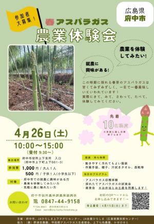 【広島県府中市上下町】春アスパラガス農業体験会開催!